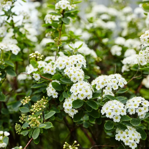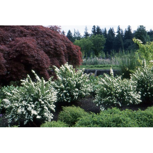 Лесен за отглеждане храст с грациозни, разперени клони, тъмнозелени листа и изобилие от бели цветни гроздове, които правят впечатляващо шоу в средата и края на пролетта. Използвайте го в задната част на бордюра или като ефектен пролетен акцент. Отрязаните стъбла с цветове създават зашеметяващи цветни композиции. Листопадни растения.